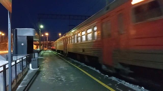 Электропоезд ЭТ2-024 с пригородным поездом №6966 Дружинино - Баженово прибывает на О.п. ВИЗ, г. Екатеринбург, Свердловская обл.,, СВЖД Дата: 19.02.2024