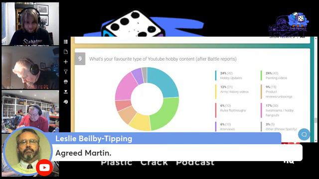 It's that time again, this time last year we held our first survey and it was great fun, so we thought why not do it again. The results have been collected, we don't know what they are, we will go through them live, discuss, debate and maybe even cry at the answers. There is still time to join in and cast your votes in the survey which you can find here: https://freeonlinesurveys.com/s/WOQAFUaH no new results will be counted after the we go live. Facebook Group: https://www.facebook.com/groups/1654249771448534 Got a question you want answering or just want to contact us: theplasticcrackpodcast@gmail.com Please like and subscribe for more. Links to all our channels below: Dom: https://www.youtube.com/c/BootsontheTablewithGamerDom Ken: https://www.youtube.com/c/MiniatureWargamingWarriors Martin: https://www.youtube.com/channel/UCgF5_KhcgdvNiRcrI0ZSJCg Ste: https://www.youtube.com/c/OnPointHQ