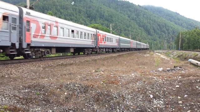 июль 2011 года перегон Слюдянка-Утулик Восточно-Сибирская железная дорога возможно поезд 8 Новосибирск-Владивосток EP1-139 with a passenger train at the foothills of lake Baikal, at the entrance station Utulik jule 2011 Slyudyanka-Utulik stage Vistochno-Sibirskata railway possible train 8 Novosibirsk-Vladivostok