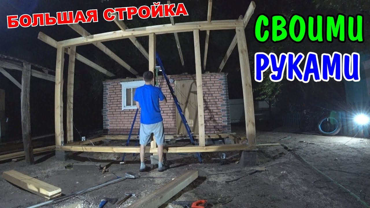 БОЛЬШАЯ СТРОЙКА В ДЕРЕВНЕ / ПОСТРОИЛ СВОИМИ РУКАМИ / ПРИСТРОЙКА ДЛЯ САУНЫ / ЛЕТНЯЯ БЕСЕДКА