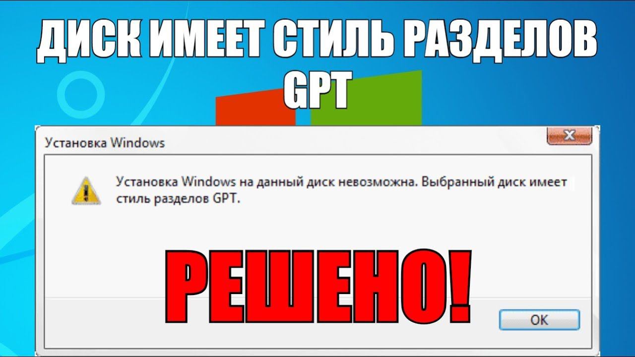 Диск имеет стиль разделов GPT | Решено!