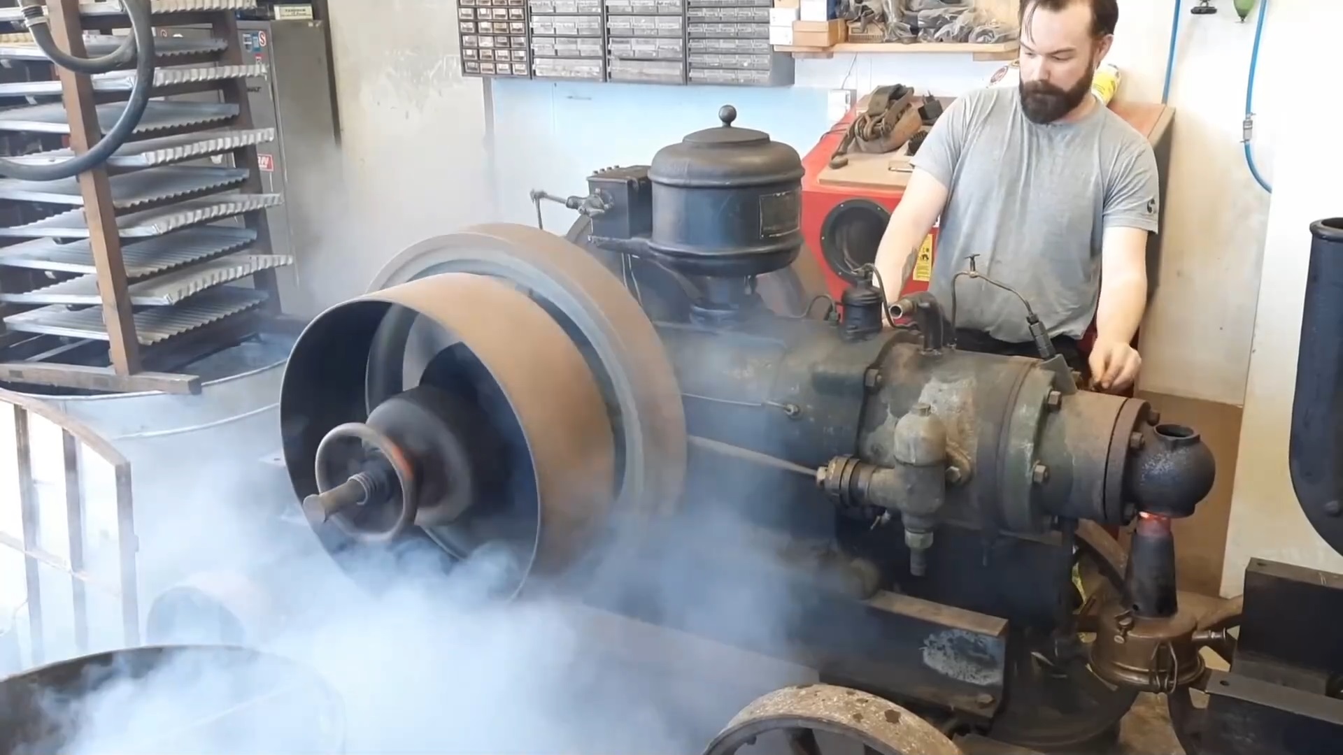 Запуск 10-литрового двигателя, работающего на сырой нефти. Нефтяной двигатель 1915 года