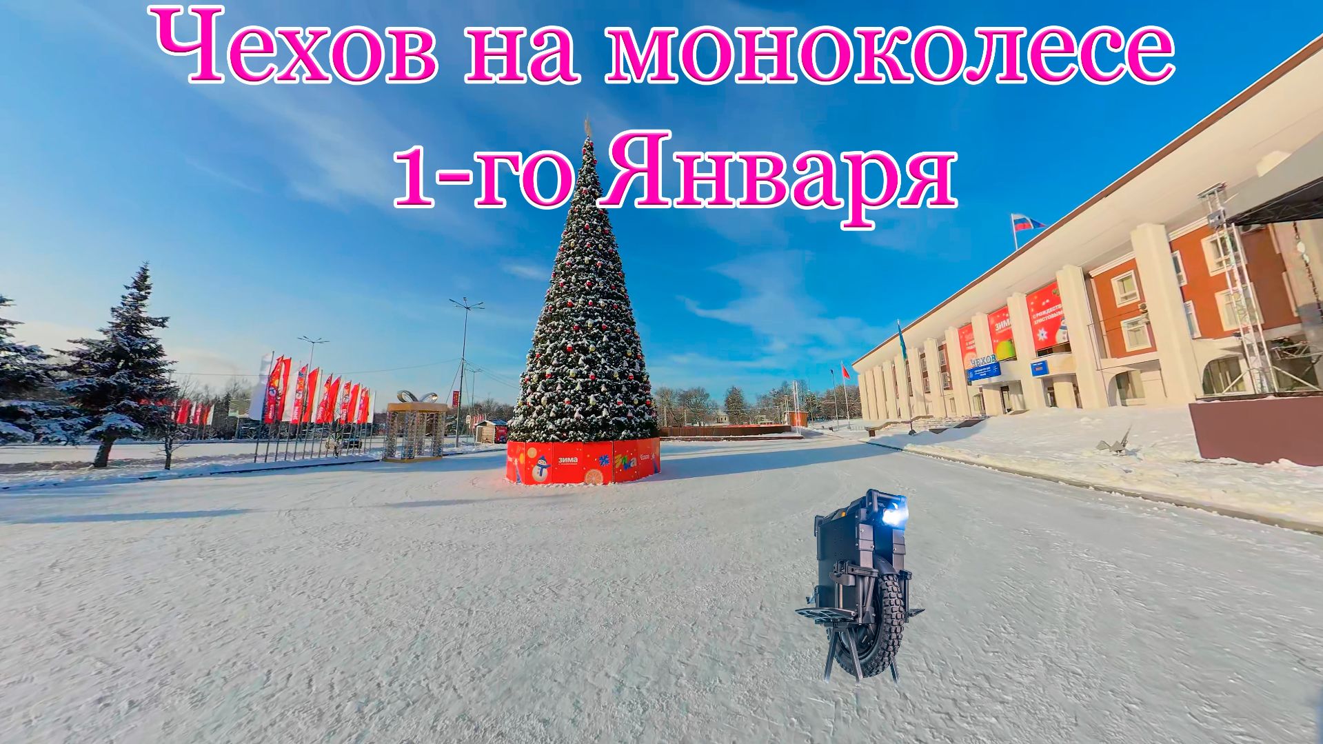 Еду на моноколесе утром 1-го Января по зимнему городу Чехов