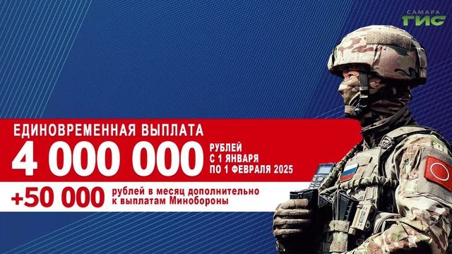 Жители Самарской области могут заработать 7 млн рублей за первый год службы по контракту. До 1 февраля единовременная выплата составляет 4 млн. Бойцы будут получать по 50 тысяч рублей на протяжении 9 месяцев.