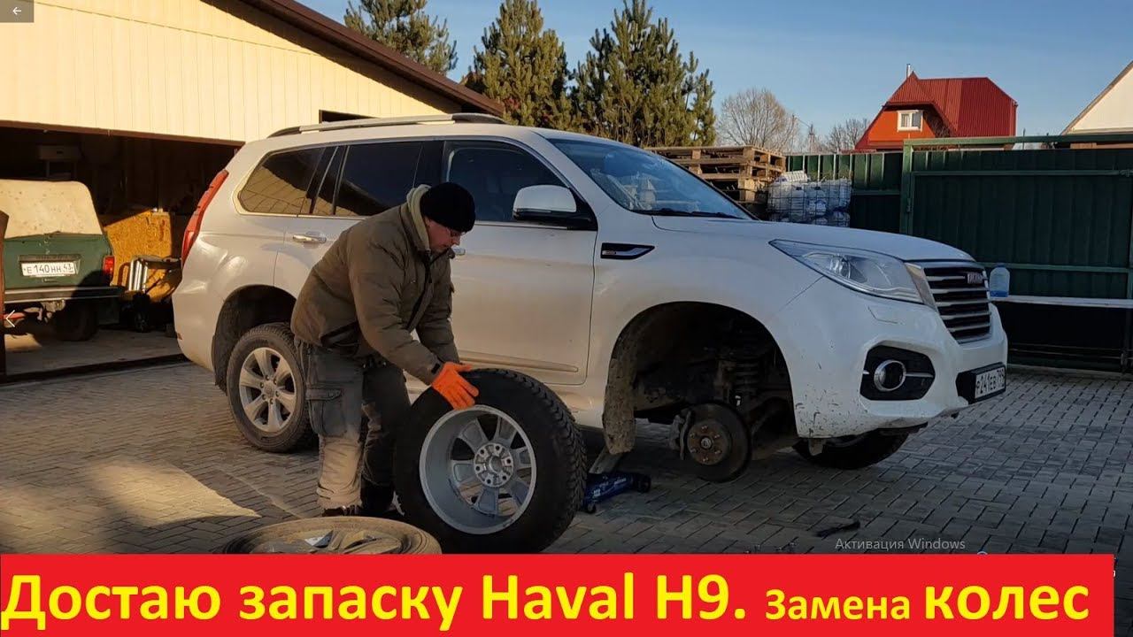 Как достать запасное колесо на Haval H9. Устанавливаю зимние колеса.