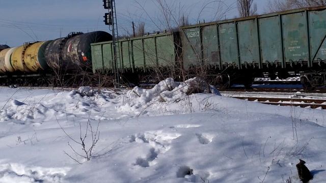 Лок.бригаде спасибо за приветствие! 2ТЭ25Км - 0152 с грузовым поездом следует по 2гл.пути. СКЖД. 14•02•25г. 14:08.