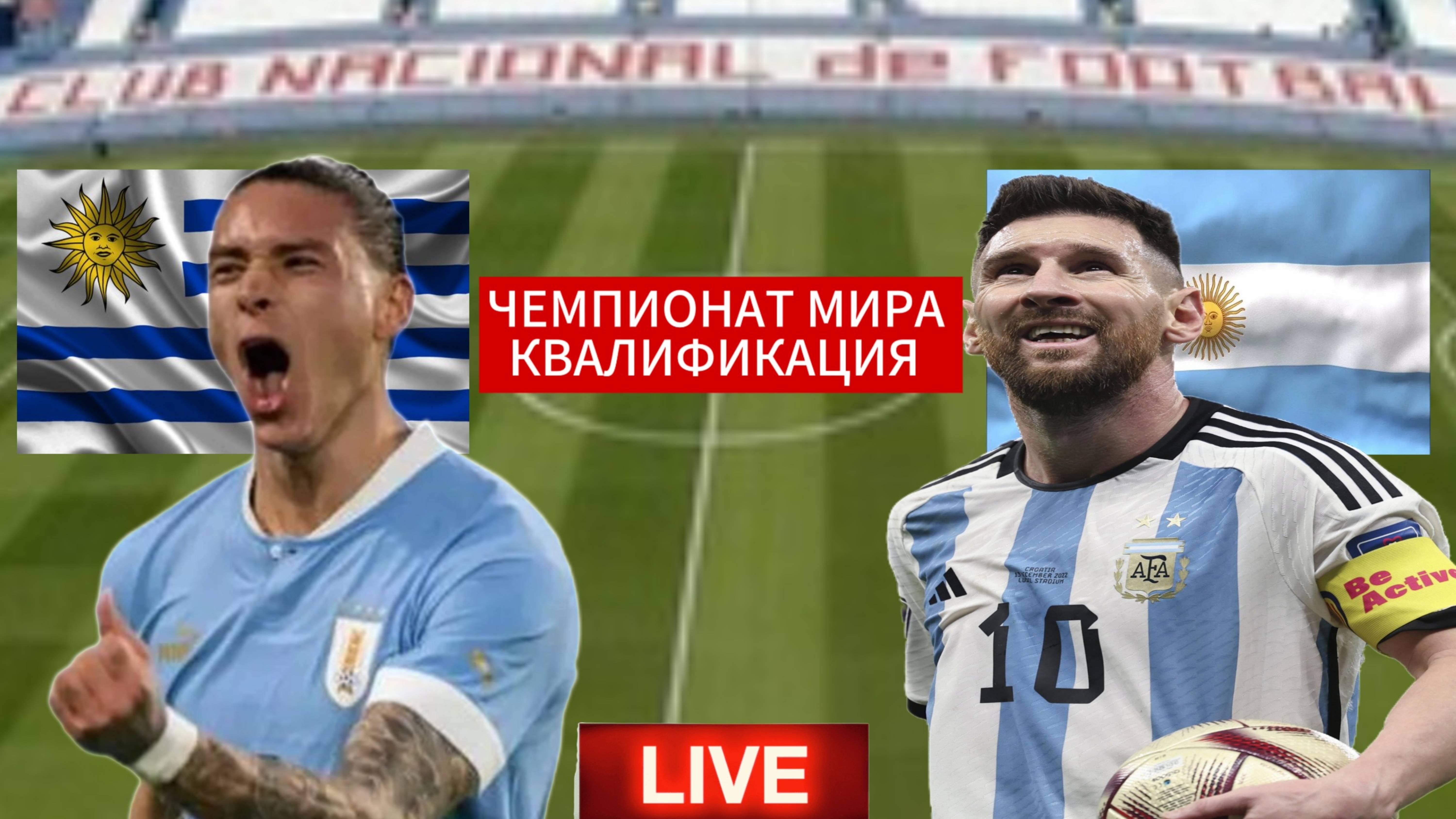 ФУТБОЛ ЧЕМПИОНАТ МИРА КВАЛИФИКАЦИЯ. УРУГВАЙ - АРГЕНТИНА. ПРЯМАЯ ТРАНСЛЯЦИЯ. С 60-90МИНУТУ