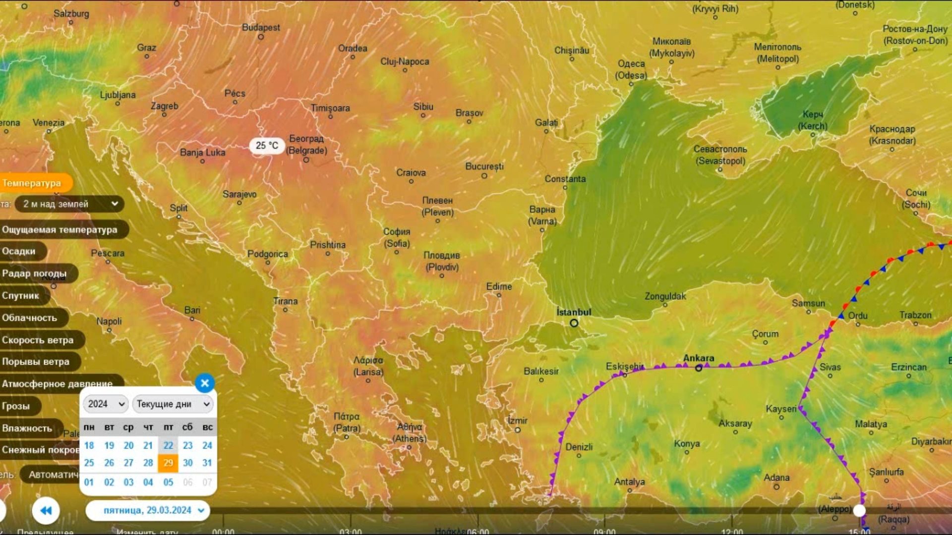 С 28-29 марта на Балканы возможен вынос тепла из Африки. Прогноз погоды