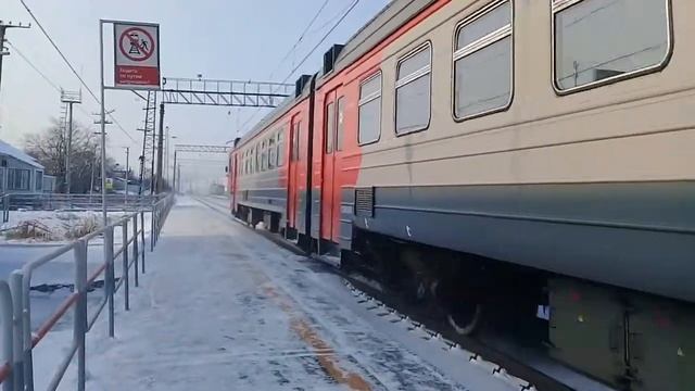 Электропоезд ЭД4М-0220 с пригородным поездом 6016 Миасс-Челябинск прибывает на ст. Смолино Дата: 28.11.2020