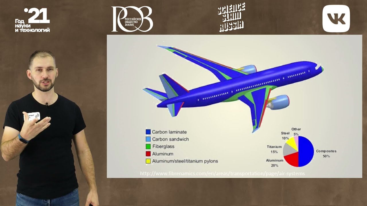 Поддержите канал! qiwi.com/p/79153981455 Содержание лекции. Почему в последнее время в конструкциях самолётов, ракет-носителей и не только часто применяют композиционные материалы? Потому что сила в единстве разных. Объединяя в композиционных материалах разные компоненты, мы можем получать материалы с уникальными свойствами, которыми не может обладать ни один однородный материал. На лекции мы узнаем, какие бывают композиционные материалы, как их получают и где они применяются. Лектор: Рамаз Чарквиани, инженер-конструктор научно-технической лаборатории «Композиционные материалы и конструкции» федерального государственного автономного образовательного учреждения высшего образования «Самарский национальный исследовательский университет имени академика С.П. Королева», победитель Всероссийского Science Slam в 2018 году, лектор Российского общества «Знание». Источник видео: https://www.youtube.com/channel/UCCD1iWIdDccp6bdWG59YUeA