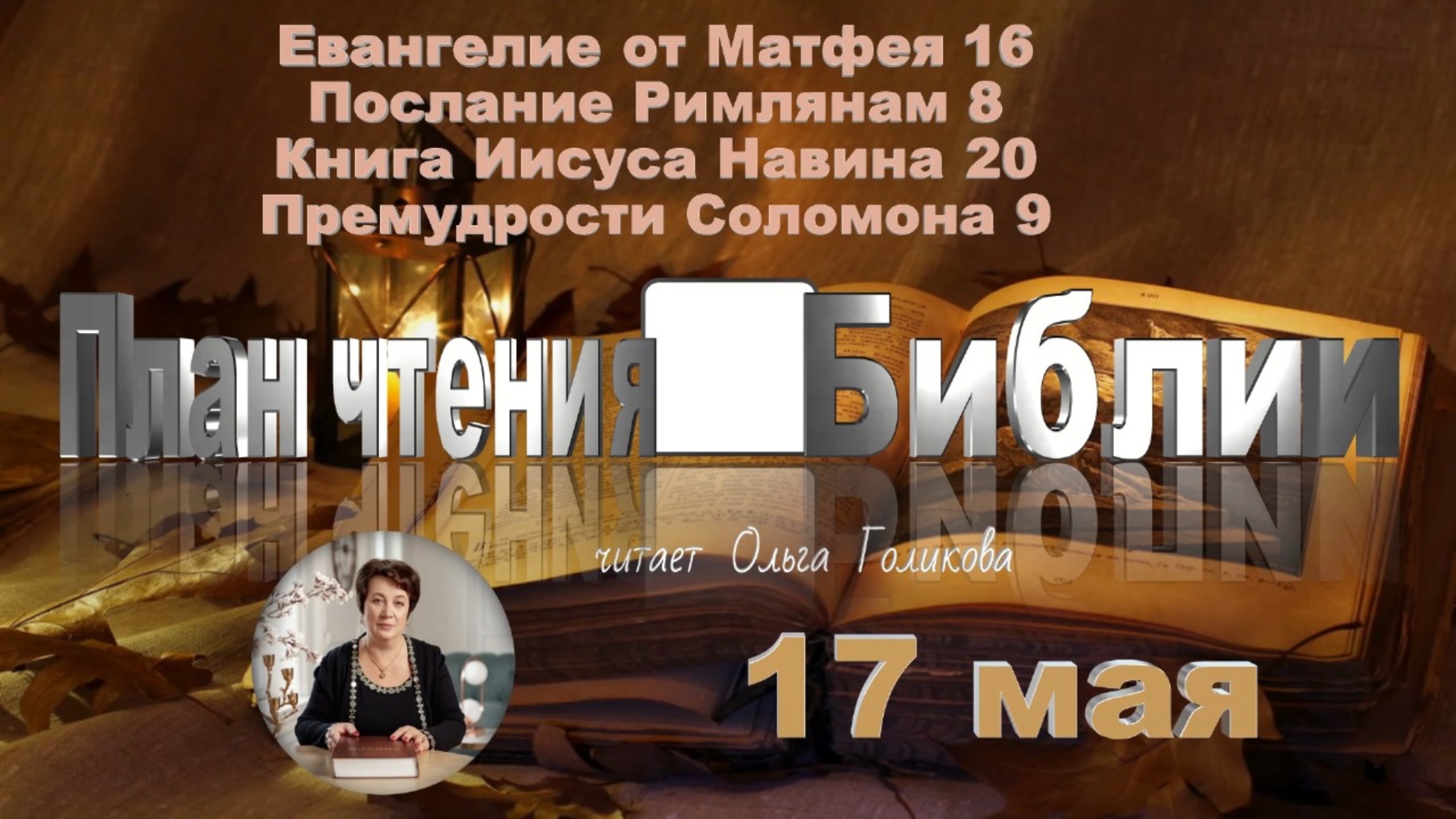17 мая - Евангелие от Матфея 16; Послание к Римлянам 8; Иисус Навин 20; Премудрости Соломона 9