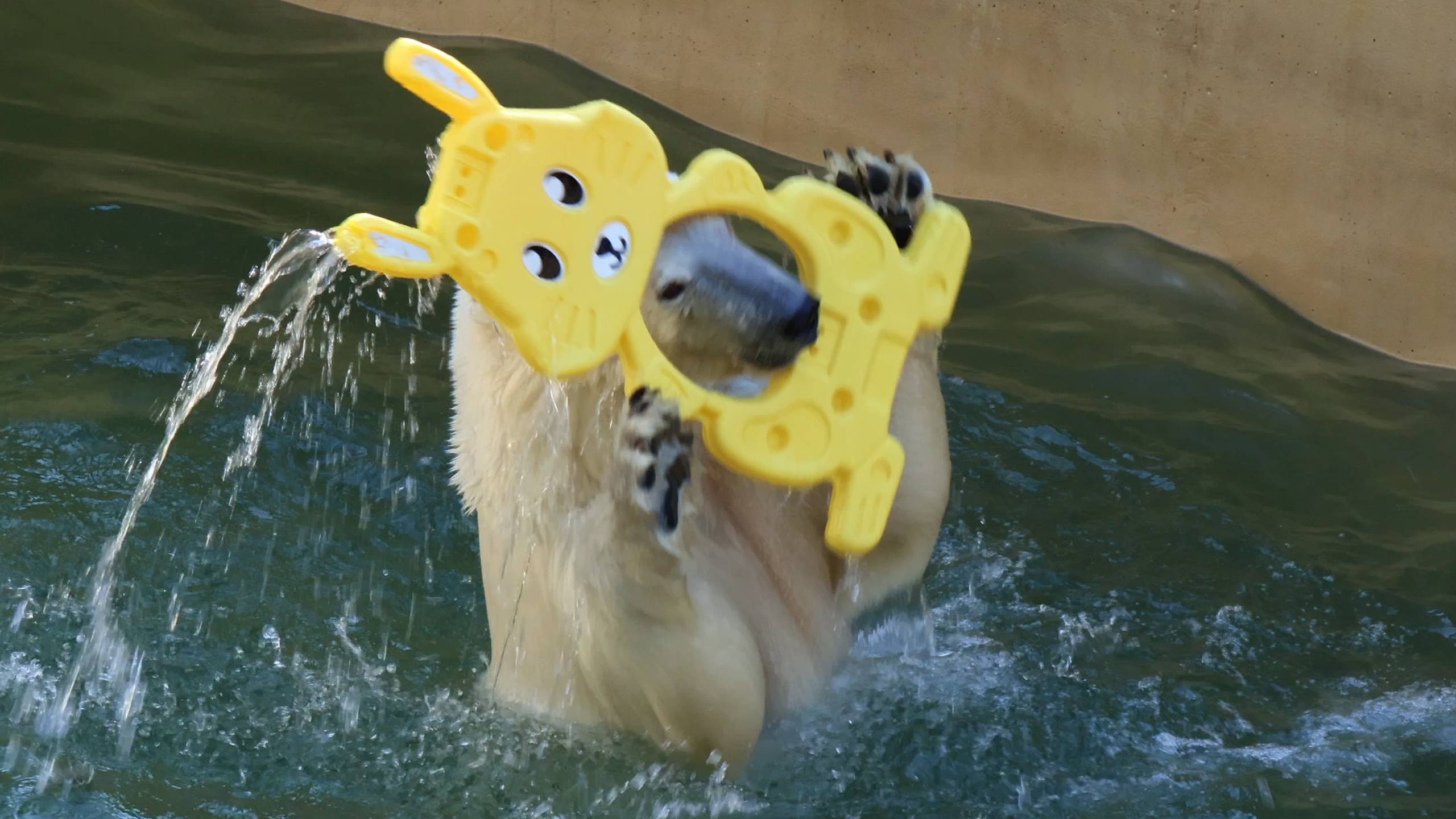 Белка и Стрелка играют с подарком от японских поклонников..