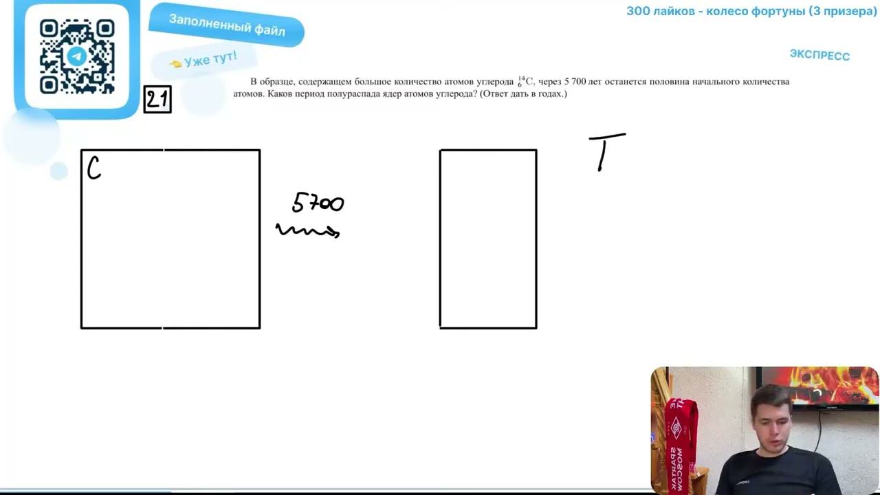 В образце, содержащем большое количество атомов углерода 14 6C, через 5 700 лет останется - №28170