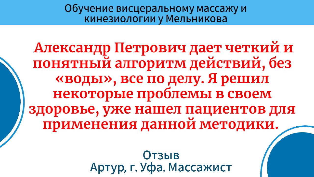 Обучение висцеральному массажу и кинезиологии Отзыв Артур, г Уфа Массажист