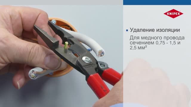 Преимущества: 6 функций в одних клещах Для захвата плоского и круглого материала, гибки, удаления заусенцев, резки кабеля, удаления изоляции и опрессовки контактных гильз Гладкие губки для захвата отдельных жил без их повреждения Профилированные губки и выемка для захвата плоского и круглого материала Специальная наружная кромка на губке для обработки штепсельных розеток для скрытой проводки и удаления заусенцев на отверстиях для ввода кабеля Удаление изоляции с проводов 0,75 – 1,5 мм² и 2,5 мм² Опрессовочное гнездо для контактных гильз 0,5 – 2,5 мм² Ножницы с прецизионными лезвиями (индуктивной закалки) для резки медного и алюминиевого кабеля до 5 x 2,5 мм² / Ø 15 мм Узкая конструкция рабочей части облегчает доступ к детали Винтовой шарнир: точный ход без люфта В моделях с разжимающей пружиной закрытие защёлки приводит к смыканию лезвий, но не блокирует другие функции Благодаря рациональному механизму удержания, удобно захватывать детали, не открывая клещи. Режущие кромки остаются сомкнутыми и защищенными.