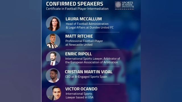 A 3-month course designed for football agents. Speakers include top agents, sports lawyers, sporting directors, scouts, club executives and marketing & image rights consultants. 100% online with live weekly virtual classes. Learn more about the course here: https://www.sbibarcelona.com/programsdetails/index/458