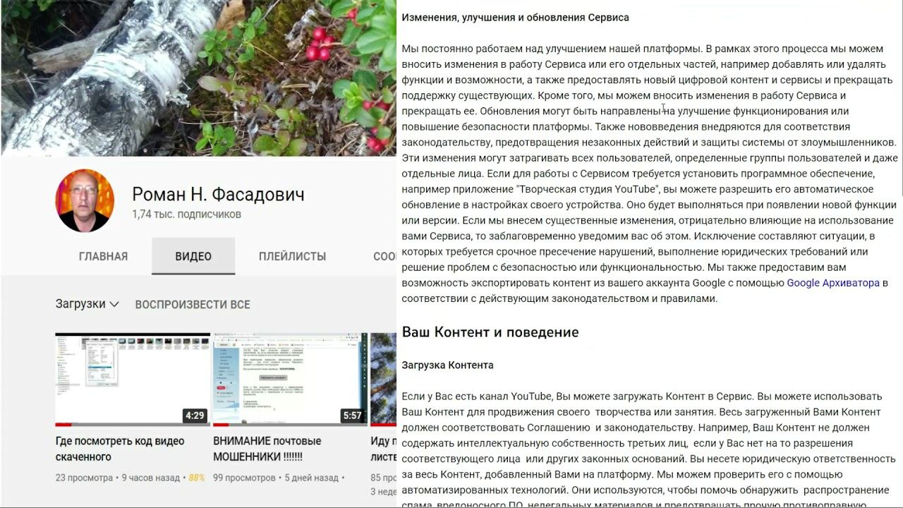 Измениние условий использования Ютуб
