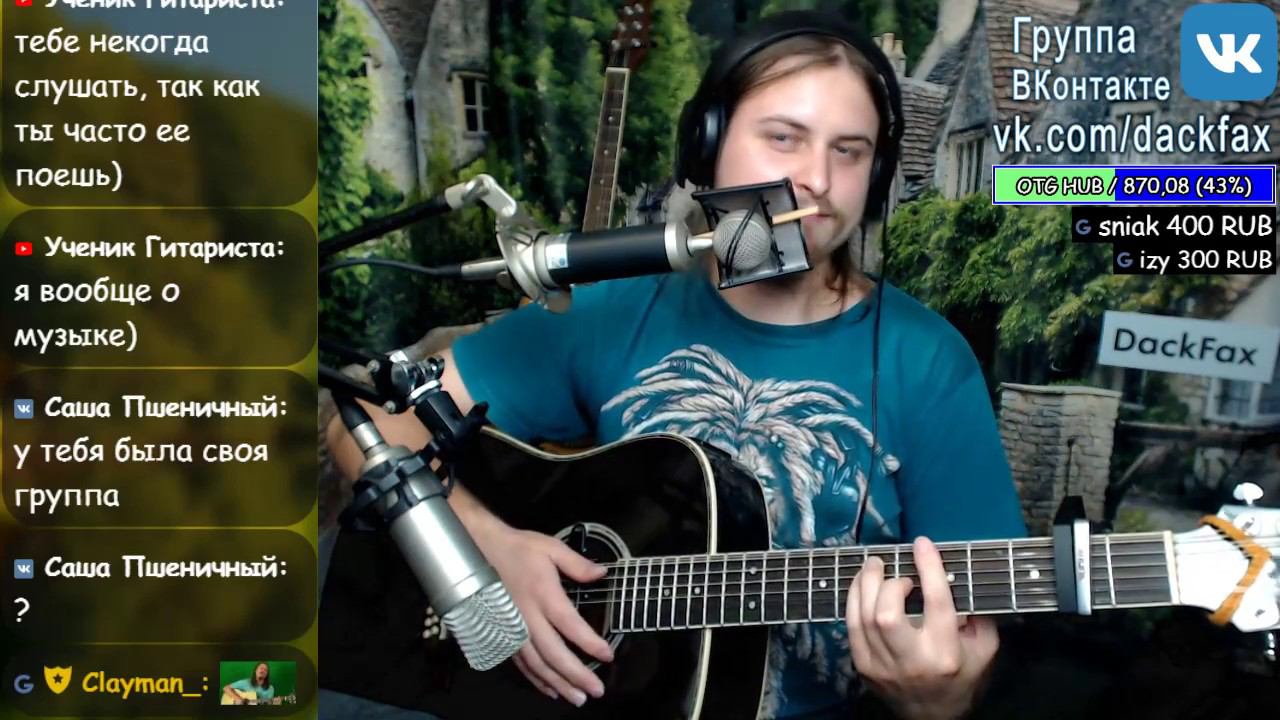 ⛔ Заказа песен - нет. Плейлиста - нет. Мат \ оскорбления - Запрещены. ⛔ Поддержать: https://www.donationalerts.ru/r/dackfax Твич: https://www.twitch.tv/dackfax Вконтакте: https://www.vk.com/dackfax Инстаграм: https://www.instagram.com/dackfax Сбербанк МИР - 2202 2009 1094 6522 -анонимно Qiwi: +79529705023 -анонимно Яндекс Деньги: 410016891810710 -анонимно Qiwi, Сбербанк и Яндекс деньги, без уведомления на экране и прочтения вслух и без комиссии. Донат сервисы с выводом сообщения на экране. Донат: https://donatepay.ru/d/dackfax € Donate: https://streamlabs.com/dackfax Донат GG: https://goodgame.ru/channel/dackfax/support Во время исполнения все оповещения на паузе ‖ . GG: https://www.goodgame.ru/channel/DackFaX ▷ Ютуб: https://www.youtube.com/user/alphapavel Facebook: https://www.facebook.com/DackFax2 Дискорд: https://discord.gg/KWkEVWS Телеграмм: https://t.me/dackfax ✉ E-mail: dackfax@ya.ru Одноклассники: https://ok.ru/dackfax Предложения\ рекомендации\ просьбы\ плизз сбацай\ А давай эту\ и т.п\ - НЕ приветствуются, ⌚ Торопиться и нагонять суету - Не рекомендуется. ⚠ Также рекомендую воздержатся от бесполезных вопросов, типа: Где ♀ ?, А ♂ придёт?, Когда альбом?, Какой город?, Почему заказа нет?, и т.п. Контент канала может быть крайне неожиданным и разнообразным. Павел качественно создаёт домашнюю ламповую атмосферу без суеты и спешки, вместе с вами учится красиво играть на гитаре, работает над вокалом и рот-саксофоном. Помимо этого исполняя разные песни и каверы, естественно, общается с аудиторией в процессе исполнения. Считаю занятным проводить концерты, посиделки, квартирники, ютубники, юморить шутки, читать и писать стихи, делиться своим личным опытом, записывать блоги\влоги и многое другое на отдыхательно-развлекательном канале ДакФакс☻ ♬ Самая любимая музыка здесь играет! Скачать записи стримов в исходном качестве https://yadi.sk/a/WBHVNDQM3Zp7bd ⚙ Оборудование ⚙ Микрофоны: Rode nt1-a (room L), Blue baby bottle (Основной), Alto ACM2S (room R); Гитара: Crafter md70-12eq; Микшер: Behringer x32 rack; Наушники: Sennheiser HD202; Камера: Logitech C920; MIDI-клава: M-Audio KeyRig 49; ОС, ПО: WIN 10, Wirecast, Nginx, FFmpeg; Мать: Asus P8Z68-V LX; Проц: i5-2400, 3.6GHz; ОЗУ: Corsair 10GB, DDR3-1600Mhz; ГПУ: GTX 660, 2GB, 192bit; SSD: KINGSTON SV300S37A, 120GB; HDD: STM3500418AS, 500GB; Мониторы: Acer AL2016W, Samsung 710N; Клава: Tt MEKA G1; Мышь: Razer krait; Свет: Wolta 50w. ♀ Нина: https://www.youtube.com/channel/UCuTuebgg92JIByp2NCfg9JA ♂ Евгений: https://vk.com/altman_e ♀ Катя: https://www.youtube.com/channel/UCtQPxkyxHirRF7jKGn09vdg ♂ Антон: https://www.youtube.com/channel/UCuWqPqgPlPvO4RmtjsHpGrQ Часто исполняю каверы на: Пикник, Аквариум, Борис Гребенщиков, Агата Кристи, Браво, Х.. забей; и много других разнообразных групп, исполнителей, жанров, стилей.