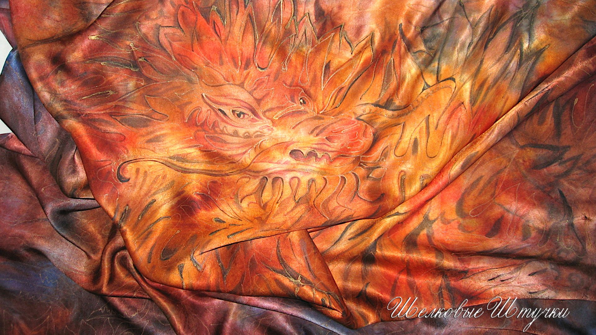 Шелковый платок ручной работы "Огненный Дракон" авторская ручная роспись по шелку Ручная роспись шелковых аксессуаров Дизайнеры ШЕЛКОВЫЕ ШТУЧКИ Ксения и Ольга _________________ Наши работы можно посмотреть и купить: На Ярмарке Мастеров livemaster.ru/silkcreatures вКонтакте Творческий-Союз Шёлковые-Штучки https://vk.com/id96107109 Подарки "Шелковые Штучки" роспись по шелку https://vk.com/club17309637