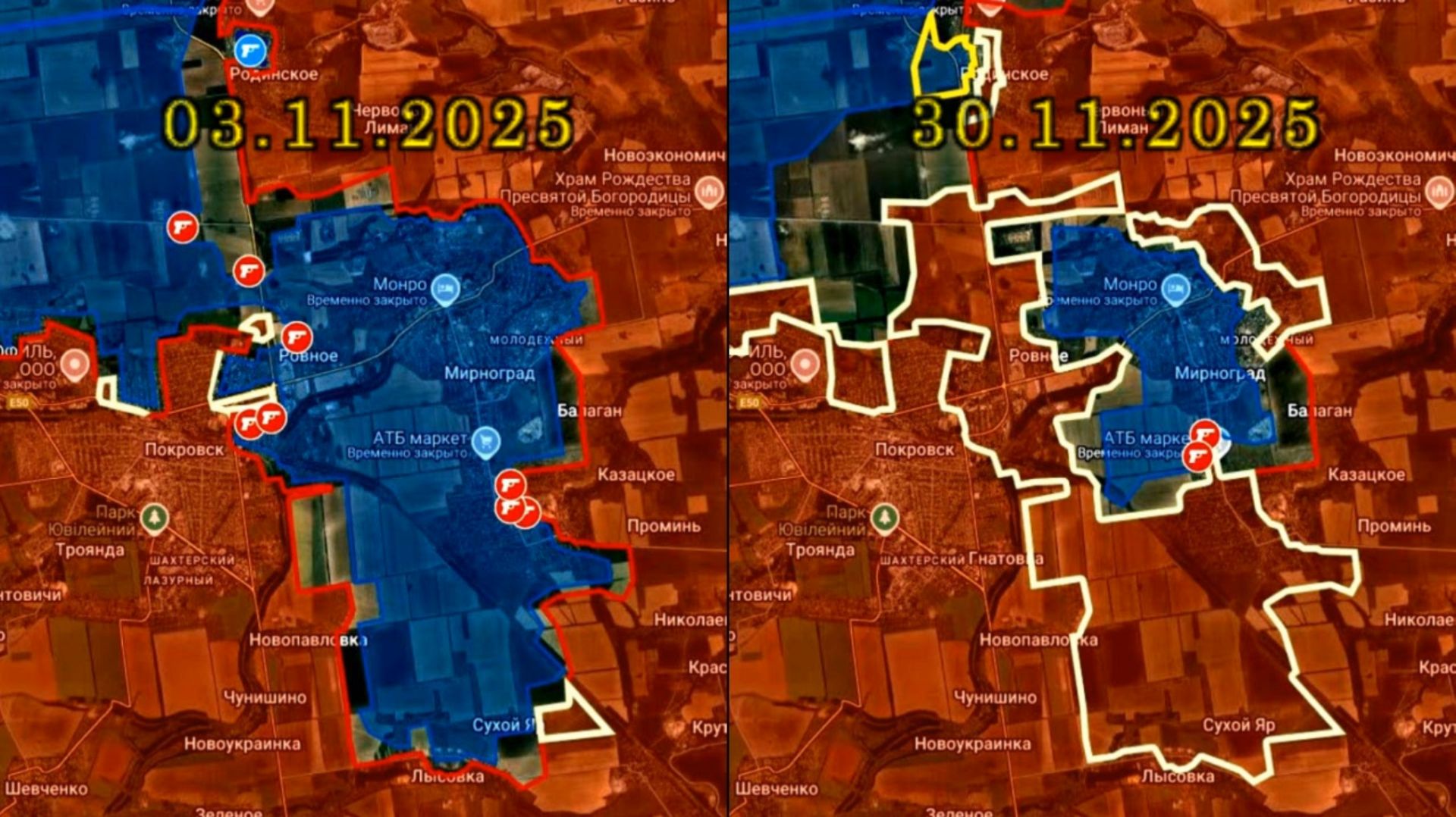Карта боевых действий. Образование котла в Мирнограде за ноябрь 2025 года