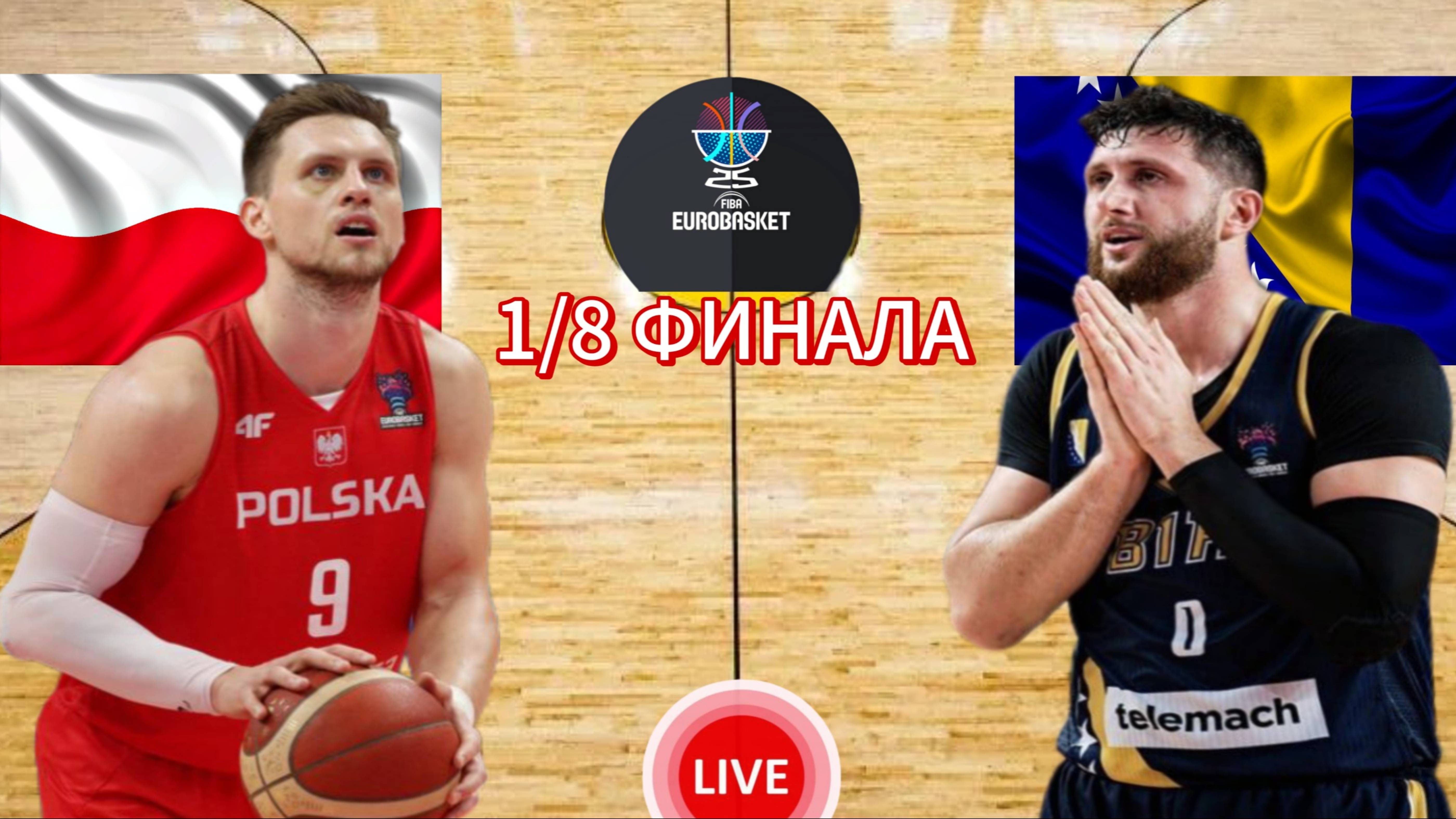 БАСКЕТБОЛ ЧЕМПИОНАТ ЕВРОПЫ ЕВРОБАСКЕТ 1/8 ФИНАЛА. ПОЛЬША - БОСНИЯ И ГЕРЦЕГОВИНА. ПРЯМАЯ ТРАНСЛЯЦИЯ