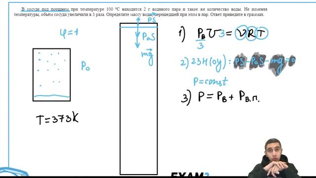 В сосуде под поршнем при температуре 100 ºС находится 2 г водяного пара и такое же - №24317