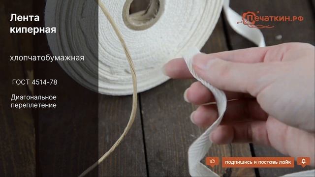 Лента киперная - различной ширины и длинны. Подробное описание и цены на нашем сайте: http://www.pechatkin.org/lenty/lenta_xlop.html Доставка по всей России.