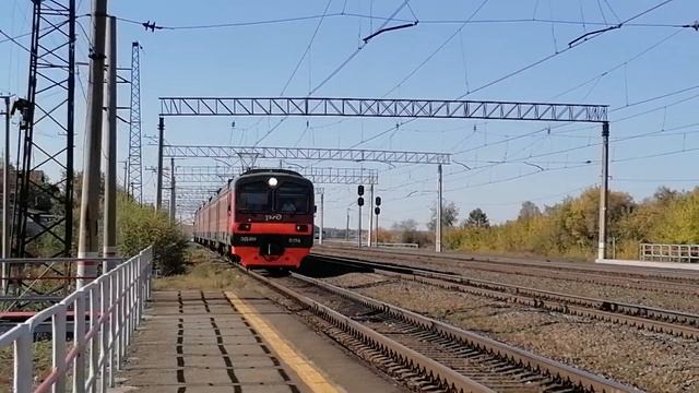 Электропоезд ЭД4М-0174 с пригородным поездом №6016 Миасс-1 — Челябинск-Главный в 6-ти вагонной составности прибывает на 1-й путь Ст. Смолино, г. Челябинск, Челябинская обл., ЮУЖД Дата: 04.10.2022