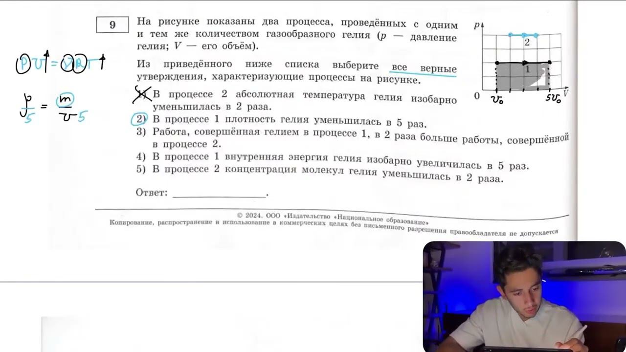 На рисунке показаны два процесса, проведённых с одним и тем же количеством газообразного гелия - №