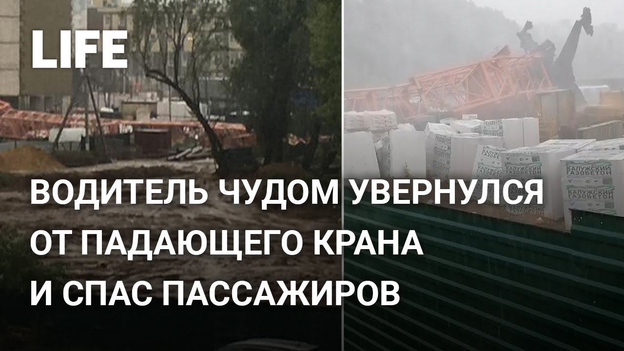 Водитель маршрутки чудом увернулся от падающего крана в Подмосковье
