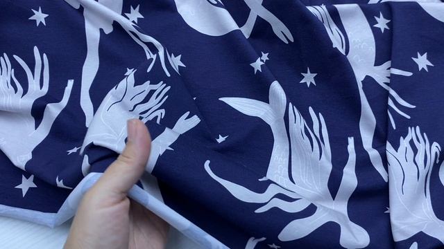 Трикотаж синего цвета с принтом русалки 38297