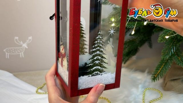 332750 Фонарь декоративный с новогодним принтом ретро 28см в ассортименте