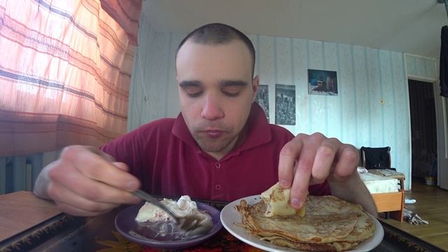 МУКБАНГ БЛИНЫ и СМЕТАНА СЫРНИКИ и ВАРЕНЬЕ КЛУБНИЧНОЕ ОБЖОР Еда на камеру ДЕСЕРТ