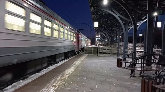 Электропоезд ЭД4М-1037/1038 с пригородным поездом №6444 Нижний Тагил - Керамик прибывает на 2-й путь О.п. Первомайская, г. Екатеринбург, Свердловская обл., СВЖД Дата: 18.02.2024