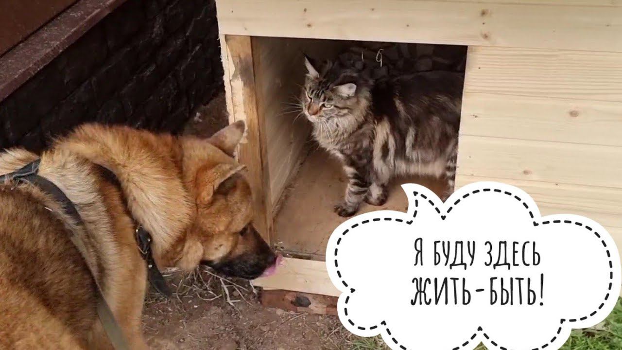 Домик для собаки ещё не достроен, но кошка Морошка уже одобрила. Или нет?