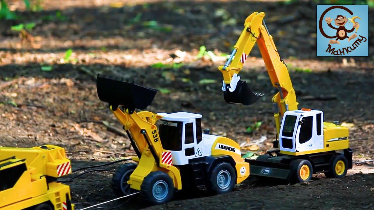 Мультик про Машинки. Экскаватор, Трактор, Автокран и Вода. Манкиту