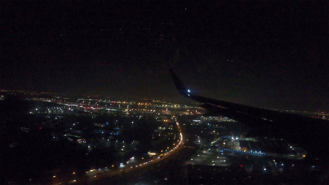 Ночная безоблачная посадка в Шереметьево на Airbus A320. На ВПП-3 (полоса с курсом 24, правая)