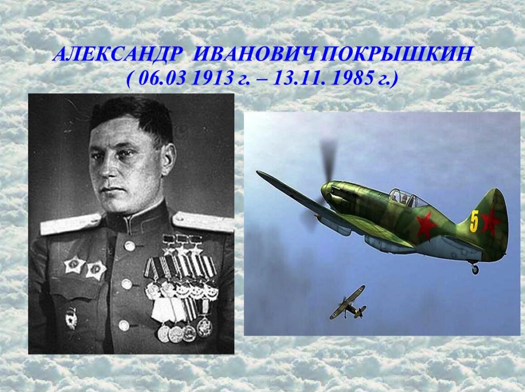 Есть имена в истории России, которые не только не забываются, но и с каждым годом ярче и светлее проявляется в памяти потомков. Все зримее становится для нас облик героев, отдавших свои силы служению Отечеству. Один из них известный летчик-истребитель, трижды Герой Советского Союза, маршал авиации Александр Иванович Покрышкин. 6 марта исполняется 110 лет со дня рождения легендарного советского летчика-аса Александра Ивановича Покрышкина, которого боялись все пилоты Третьего рейха. Имя Александра Ивановича Покрышкина наводило страх на немецких лётчиков. «Внимание, внимание! В небе Покрышкин!» – так предупреждали друг друга по радиостанции фашистские лётчики. И боялись не зря – 59 вражеских самолётов лично сбил лётчик герой Александр Покрышкин. Покрышкин прошел войну от первого до последнего дня. Не выходил из боев с 22 июня 1941 года по август 1942-го. Позже он говорил: «Тот, кто не воевал в 1941—1942, не знает настоящей войны». Дважды был сбит, выходил из окружения. Не менее десяти раз лишь чудо спасало летчика от гибели: пули попадали в прицел, в наушник шлемофона, царапали подбородок. "Никогда не буду прятаться от врага и останусь жив. Этому следовал всегда", – говорил Покрышкин. В 1944 году он отказался от генеральской должности в штабе ВВС и вернулся на фронт. Покрышкин – создатель новой тактики советской истребительной авиации, а также системы ввода в строй молодых летчиков. В годы Великой Отечественной войны Покрышкин стал автором знаменитой формулы воздушного боя: "высота - скорость - манёвр - огонь". Среди имён военных лётчиков имя Покрышкина стоит особняком. Имея один из самых высоких официальных результатов по числу воздушных побед, он был автором, проводником и носителем новых тактических построений и приёмов воздушного боя, несгибаемым борцом с рутиной, образцом бойца – искусного, яростного и благородного. Имя А. И. Покрышкина, легендарного летчика-аса и мыслителя, стало символом Победы. К 110-летию со дня рождения Александра Ивановича Покрышкина, маршала авиации, трижды Героя Советского Союза Заринская сельская библиотека-филиал №14 подготовила час фронтовой славы и памяти «Небесный ужас фашистов». Подготовлено главным библиотекарем Заринской сельской библиотеки-филиала №14 А.А. Кисьян