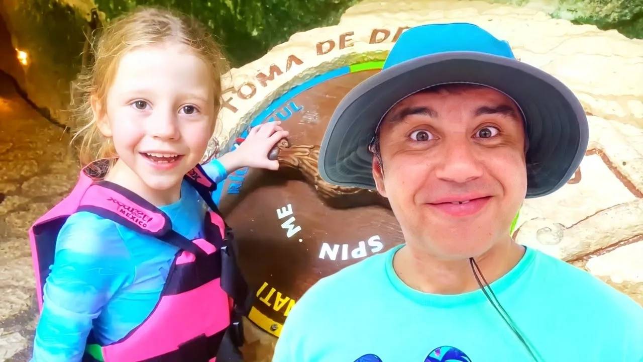 Настя играет в парках развлечений с папой