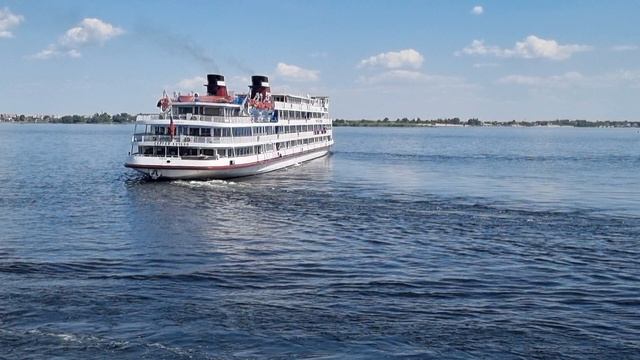 Пассажирский теплоход СЕРГЕЙ КУЧКИН уходит из Волгограда