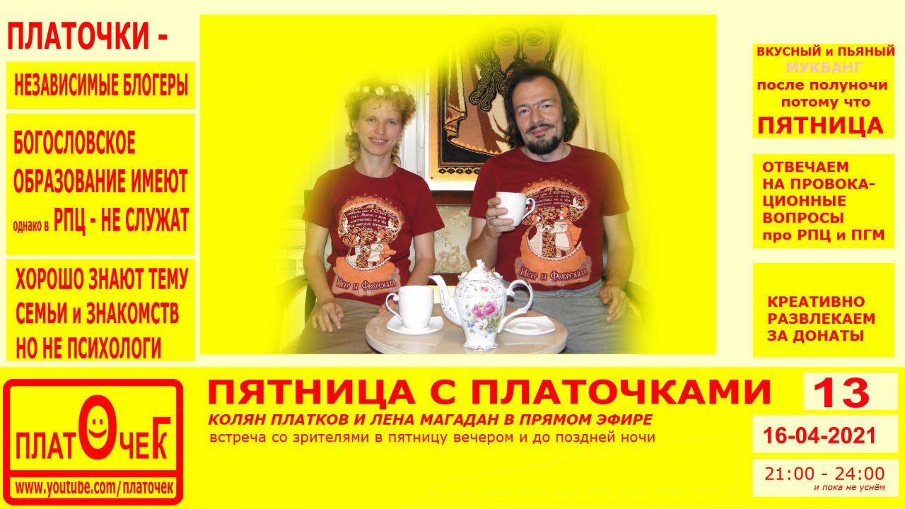 Говорим обо всём, расслабляемся, выполняем прикольные задания от зрителей за донат, отвечаем на провокационные вопросы про РПЦ и ПГМ (частное мнение светских людей с Богословским образованием) по теме "церковь и общество", "религия" и "религиозные заморочки". Весело проводим пятничный вечер. Донат: https://donationalerts.com/r/platochekg (исправлено!) Наш ВК: https://vk.com/kolyanplatkov Дзен: https://zen.yandex.ru/platochek Инста: https://instagram.com/magadanlena Тик-Ток: https://www.tiktok.com/@platochekg