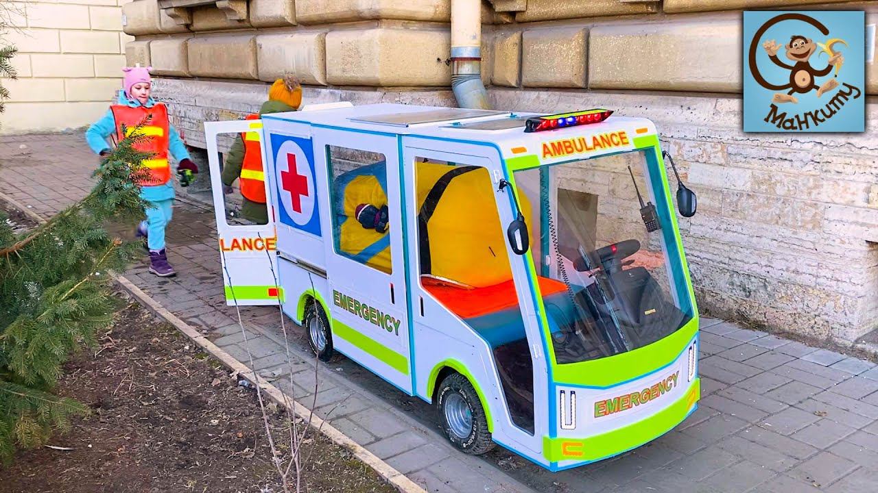 Дети и Машина. Диана и Даня играют с скорую помощь на своей машине. Манкиту Pretend Play