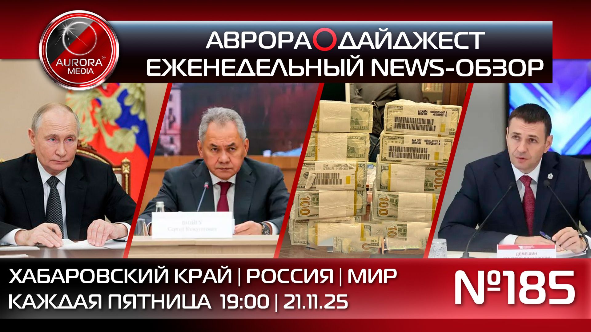 АВРОРА⭕️МЕДИА ЕЖЕНЕДЕЛЬНЫЙ ВИДЕО NEWS-РАЗБОР НЕДЕЛЯ | 14.11.2025 - 21.11.2025 АВРОРА⭕️ДАЙДЖЕСТ №185 Содержание: 0:00 Начало 0:30 В этом выпуске НОВОСТИ ХАБАРОВСКОГО КРАЯ 01:21 Дмитрий Демешин провел заседание попечительского совета ТОГУ 02:55 Глава региона представил нового начальника главного управления края по взаимодействию с правоохранительными органами 03:38 Итоги работы лесопромышленного комплекса за 2025 год озвучили губернатору Дмитрию Демешину 05:06 Ветераны пограничной службы и Центрального района поучаствовали в создании мурала в Хабаровске 05:44 В Хабаровске прошел фестиваль спортивных единоборств «Юный Динамовец» НОВОСТИ РОССИИ 06:31 На Шойгу пытались совершить покушение на Троекуровском кладбище 07:19 Путин подписал закон о пожизненном за вовлечение подростков в диверсии НОВОСТИ МИРА 08:19 ЕС мешает расследованию дела о коррупции на Украине 09:35 СБ ООН принял резолюцию с мирным планом Трампа для сектора Газа || Телеграмм-экосистема А⭕️М: | АВРОРА МЕДИА @aurora_media https://t.me/aurora_media | АВРОРА НОВОСТИ @news_aurora https://t.me/news_aurora | АВРОРА ХАБАРОВСК @khv_aurora https://t.me/khv_aurora | АВРОРА ЛАЙФ @life_aurora https://t.me/life_aurora | АВРОРА СПОРТ @sport_aurora https://t.me/sport_aurora | АВРОРА ГЕРЛС @girl_aurora https://t.me/girl_aurora | АВРОРА ХАЙТЕК @ht_aurora https://t.me/ht_aurora | АВРОРА ПЕРСОНЫ @people_aurora https://t.me/people_aurora | АВРОРА ИНСАЙД @media_aurora https://t.me/media_aurora | АВРОРА КРИМИНАЛ @crime_aurora https://t.me/crime_aurora | АВРОРА МОЛОДОСТЬ @aurora_young https://t.me/aurora_young || Aurora_Media: | Российское Информационное Агентство | +7(4212)900-900 media@auroragroup.info