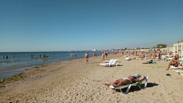 Обычный пляж на песчаном побережье Анапы