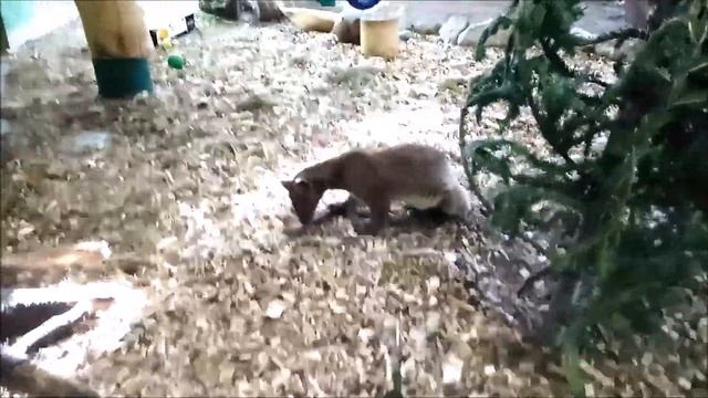 Из Великобритании в Новосибирск доставили самку фоссы в сентябре 2019 года. Это – хищник, который относится к семейству мадагаскарских виверр. В названии семейства имеется указание на ареал: фосса – эндемик Мадагаскара, самый крупный хищник этого острова. Во внешнем облике животного есть кошачьи черты. Фосса относится к уязвимым видам. Человек разрушает естественную среду обитания этих животных, и охотится на них. Фосса очень любит играть. Она охотно осваивает новые приспособления, активно играет со всем, что попадает к ней в вольер. Фосса не просто прыгает, хватает, кусает, а еще и показывает, что может добраться до корма даже вниз головой. Неслучайно ее называют главным хищником Мадагаскара.