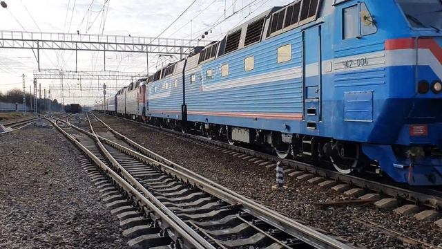 Большое спасибо локомотивной бригаде, они сделали всё красиво! все виды сигналов от ЧС7 8 марта 2020 года в 15:48 станция Кубинка-1 Белорусское направление Московская железная дорога поезд №96 Брест-Москва ходит с прицепными вагонами РИЦ-200 международного сообщения Прага-Москва blue CHS7-034+CHS7-107 with train number 96 Brest-Moscow whistles and flies into the station Many thanks to the locomotive crew , they did everything beautifully! all types of signals from CHS7 March 8, 2020 at 15: 48 the station Kubinka-1 Belorusskoe direction Moscowskaya railway train №96 Brest-Moscow runs with RIC-200 trailed cars of the Prague-Moscow international service
