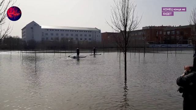 Туляки катаются на сапборде в центре Тулы. Наводнение 2024 года.