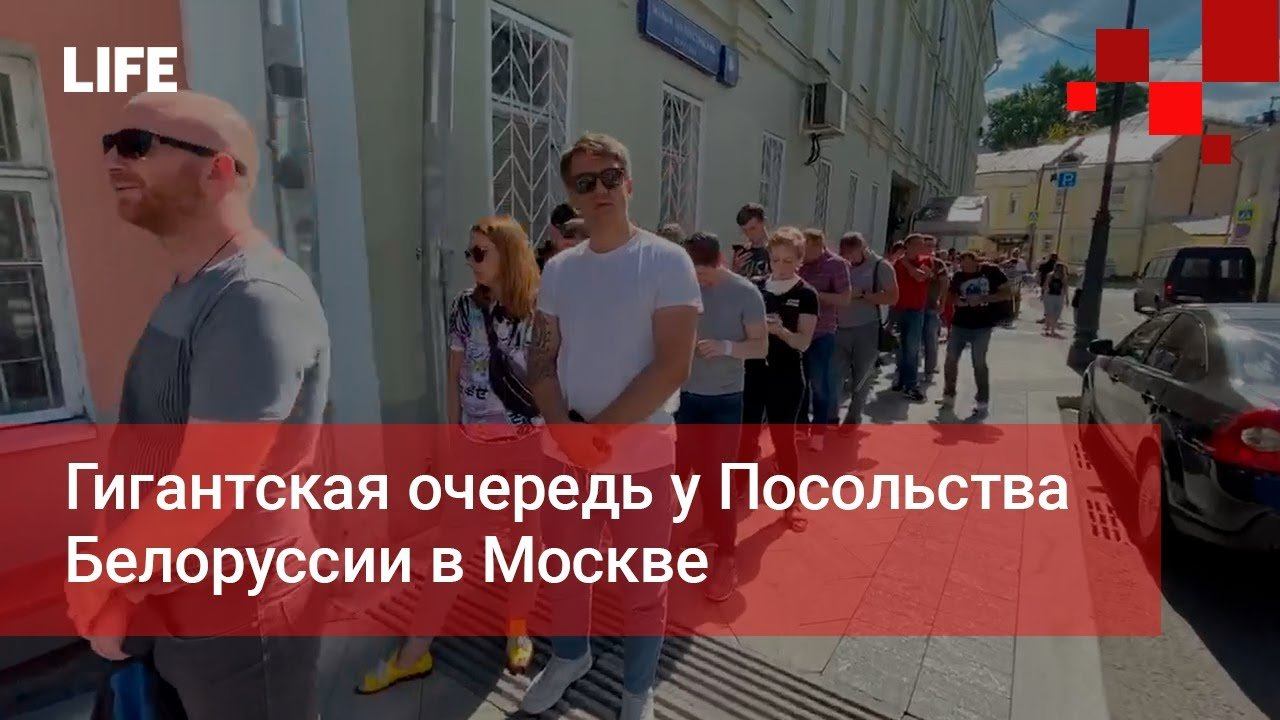 Гигантская очередь у Посольства Белоруссии в Москве