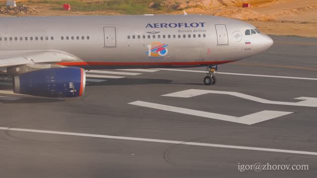 Эйрбас А330 Аэрофлот выруливает на исполнительный перед вылетом из аэропорта Пхукет.