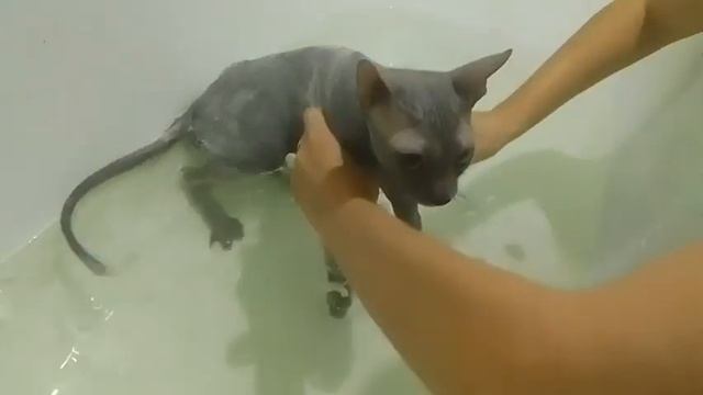 Купание Донского сфинкса Ферхата/Bathing the Don Sphinx Ferhat❤️#animals #cats #sphynx